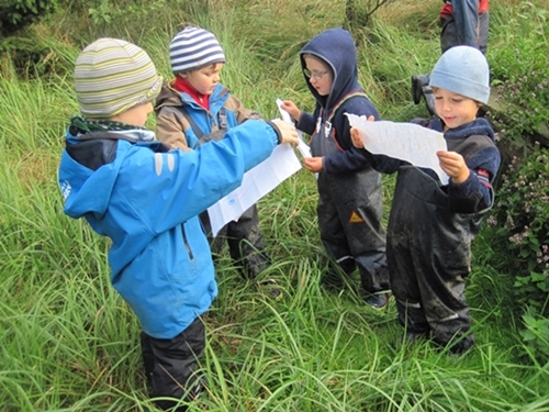 Nach der Brotzeit lässt der Regen ein wenig nach und die Kinder sind bis zum Abschlusskreis wieder ins Freispiel vertieft.