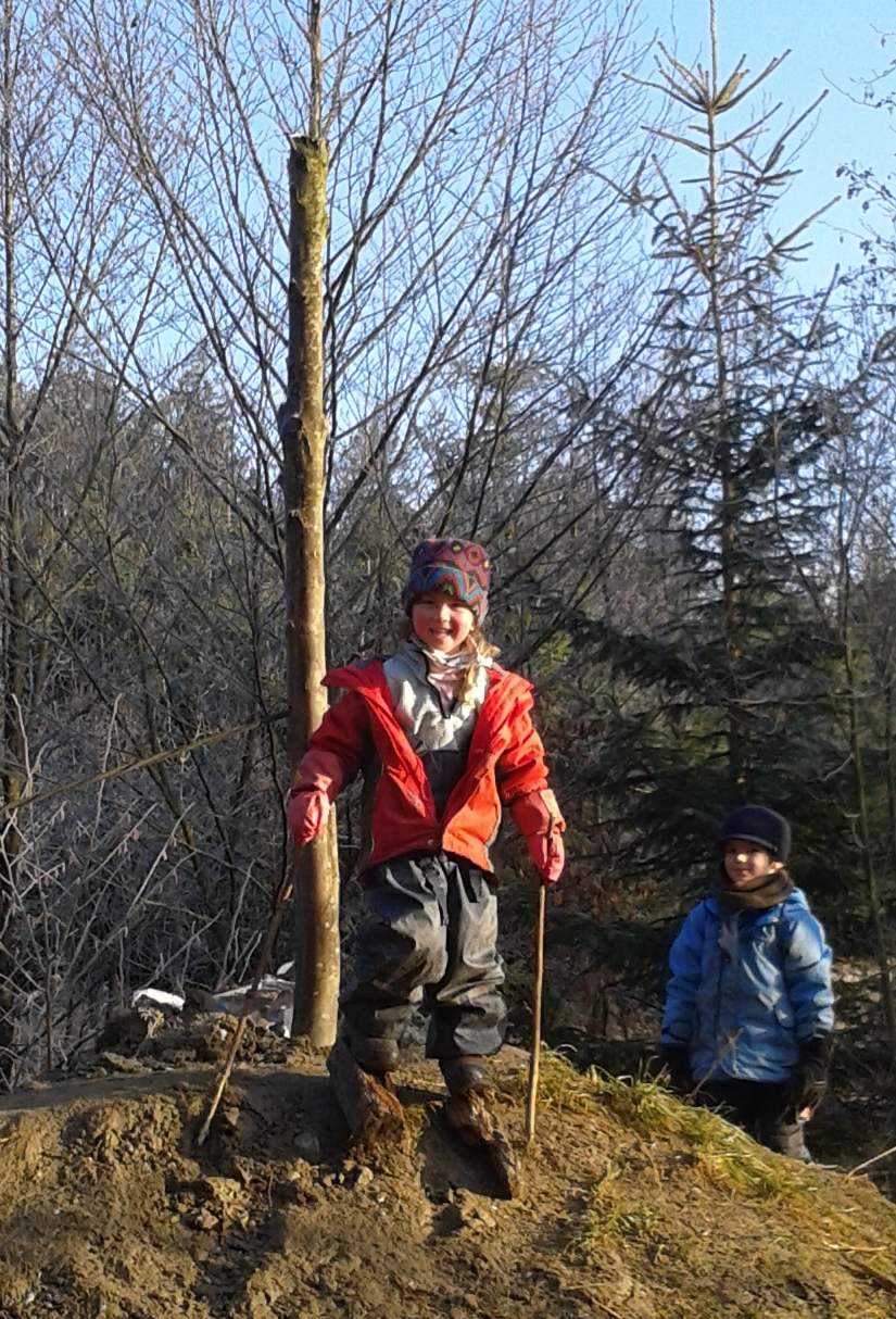 Morgen woll´n wir Schlitten fahren…. mit diesem Kreisspiel starten wir heute in den Tag. Es fehlen ganz viele Kinder, denn wir zählen anschließend nur 12 Kinder im Morgenkreis, doch die haben viel Spass beim gemeinsamen Spiel. Lilija und Elisabeth kochen wieder die leckersten Speisen und verköstigen uns ausgiebig. Kalusi und Simon machen es sich un unserem Stöckelager gemütlich, sammeln gemeinsam immer mehr Stöcke und palavern, was das Zeug hält. Tja und es sind wieder richtig viele Tiere, zahme und wilde, unterwegs, aber Franziska hast sie alle gut im Griff. Zur Brotzeit gehen wir heute im Bauwagen und es ist so gemütlich und wir sind so viel am ratschen, dass die Zeit wie im Fluge vergeht. Als wir anschließend rausgehen werden noch ein paar Schnee- und Eiskuchen gemacht und die Kinder freuen sich, dass der Berg gefroren ist, denn so darf er bestiegen werden, aber dann ist es auch schon wieder Abholzeit.